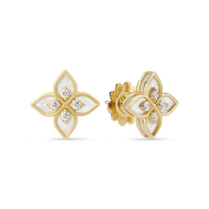 Kolczyki Roberto Coin Carousel żółte złoto diamenty masa perłowa