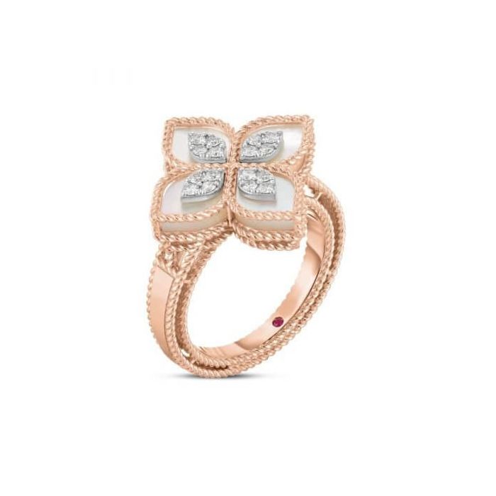 Pierścionek Roberto Coin Princess Flower złoto diamenty Masa perłowa rozmiar 15