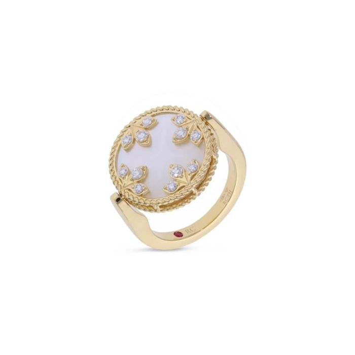 Pierścionek Roberto Coin Venetian Medallions żółte złoto diamenty Masa perłowa rozmiar 11
